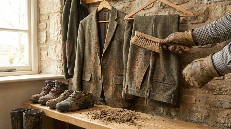 使用後のツイードの最も効果的なお手入れ方法は、まず泥や汚れを完全に乾かすことです。乾いたら、硬めの天然毛のブラシで、残った汚れをしっかりと払い落とします。このシンプルで伝統的な方法は、ウール自体の自然な耐久性と汚れをはじく特性を活用したものです。