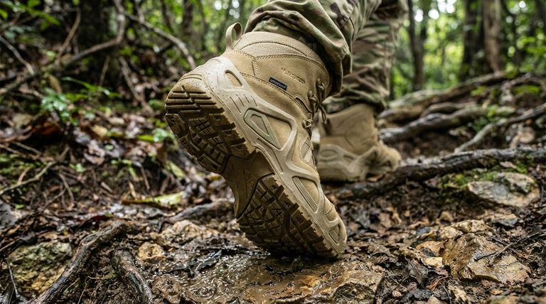 軍用迷彩ブーツのトラクションと安定性における主な利点は、迷彩柄そのものではなく、その目的のために設計された構造に由来します。その性能は、アグレッシブなアウトソールのトレッド、サポート力のある内部シャンク、高めのアンクルシャフトといった一連の機能に根ざしており、これらはすべて予測不可能な地形での確実な足元を確保するために設計されています。