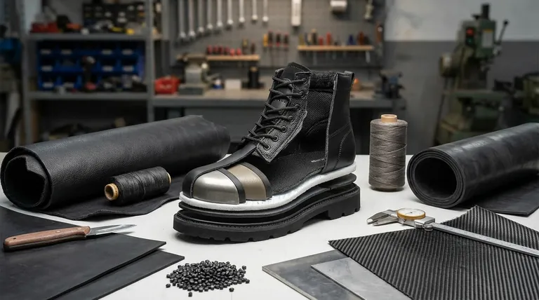 安全靴の性能は、その主要な各構成要素に使用される個別の素材によって決まります。各素材は、外部からの衝撃から内部の湿気まで、特定の課題を解決するために選択されます。